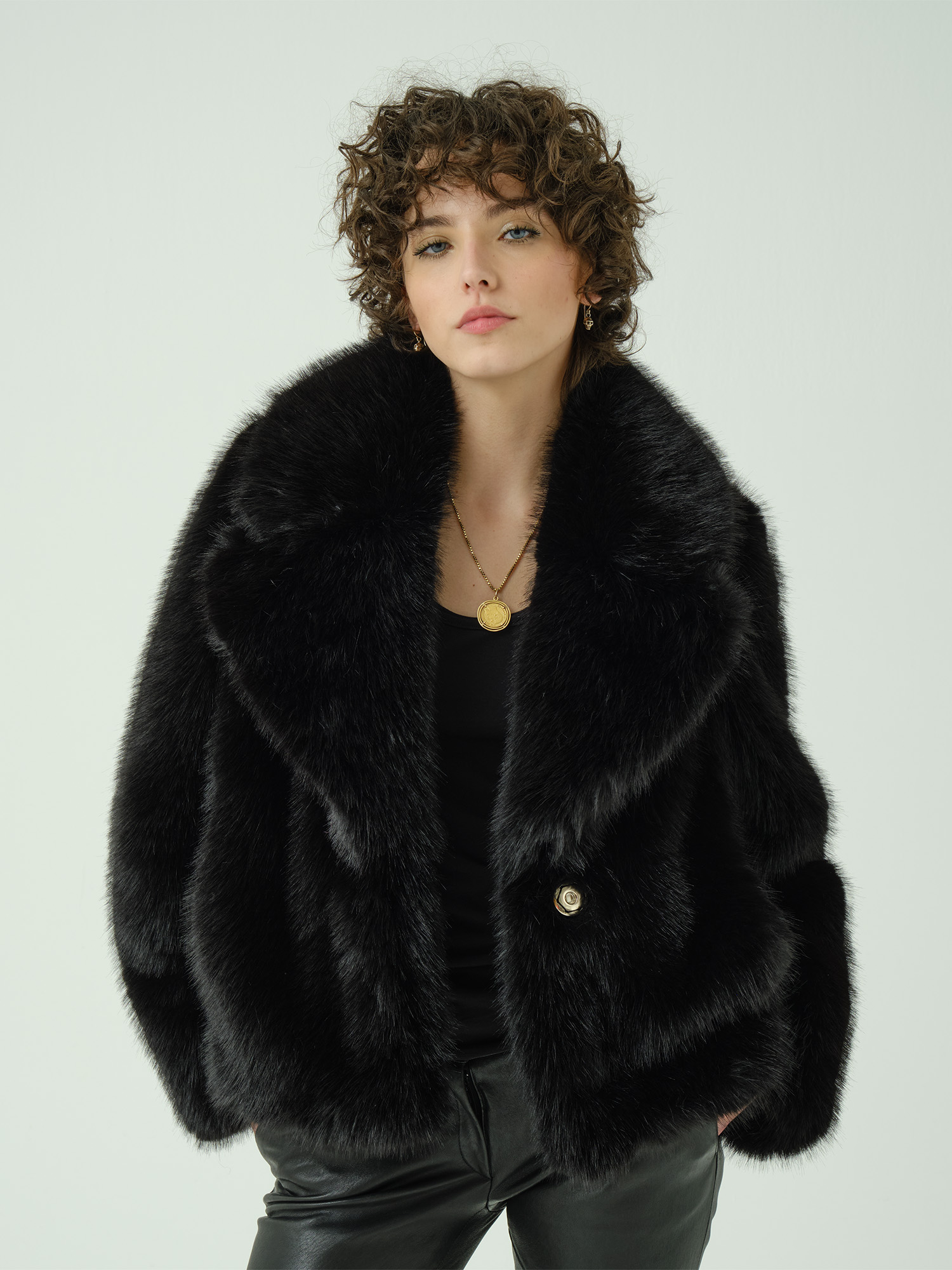 Blazer in pelo simulazione volpe black