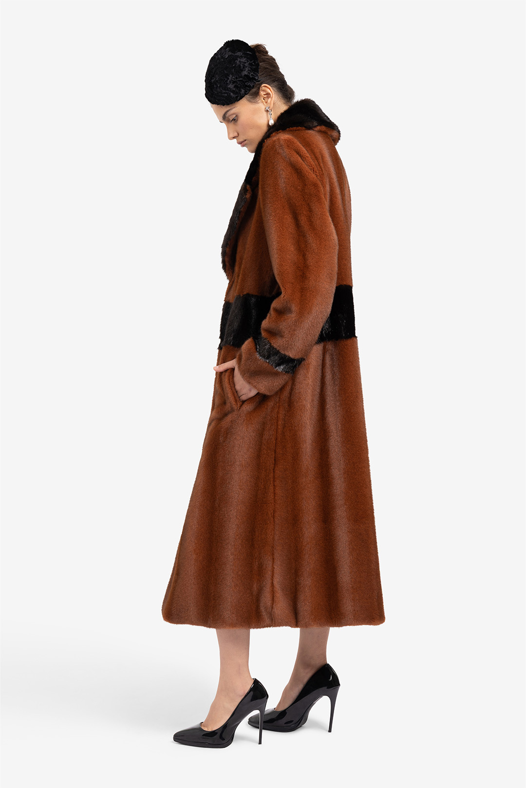 Pelliccia simulazione visone dorsato e foca