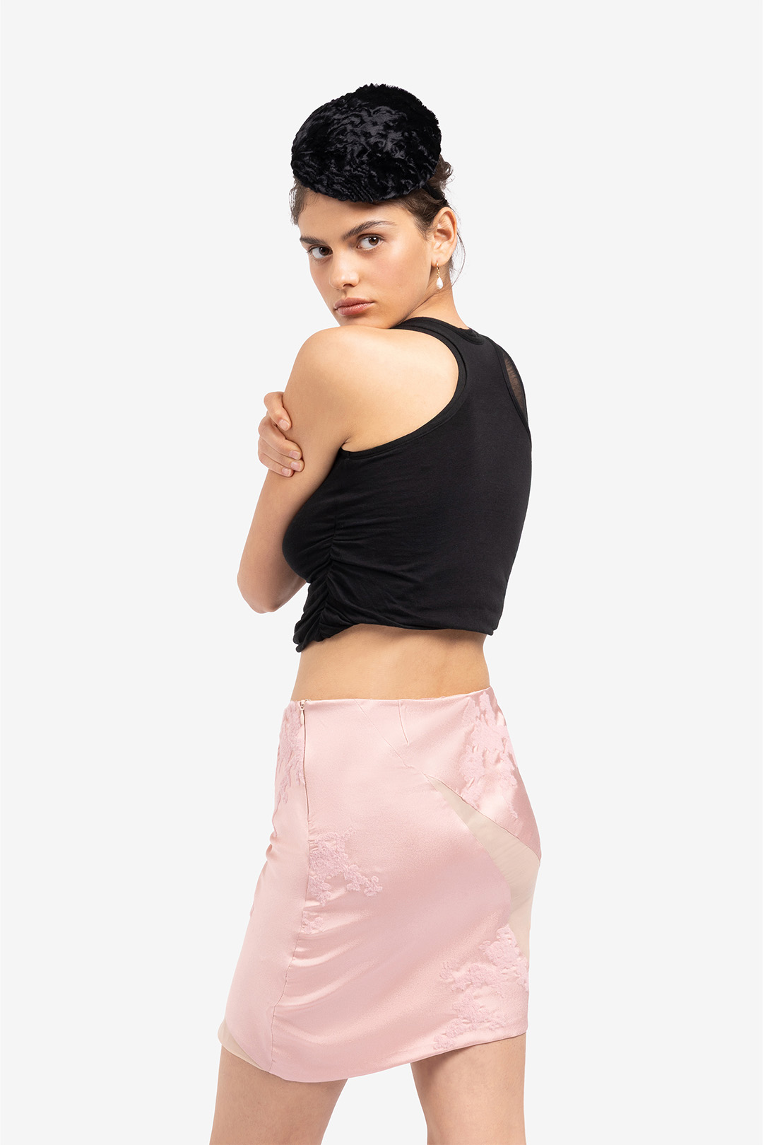 gonna corta vita bassa con zip al fianco